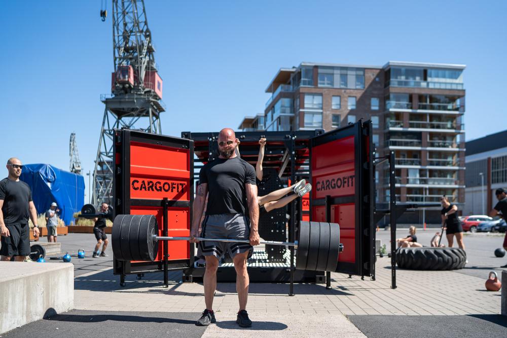 Cargofit is a container gym developed with the needs of the Finnish Defence Forces in mind. The container is fully transportable by land, air and sea and is quickly to deploy, making it ideal for use both at the barracks and in the feal.